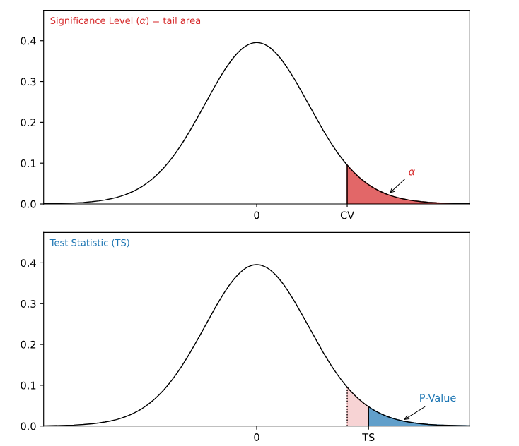 P-Value Approach में हम Test Statistic से निकाली गई P-Value की तुलना Significance Level (α) से करते हैं।