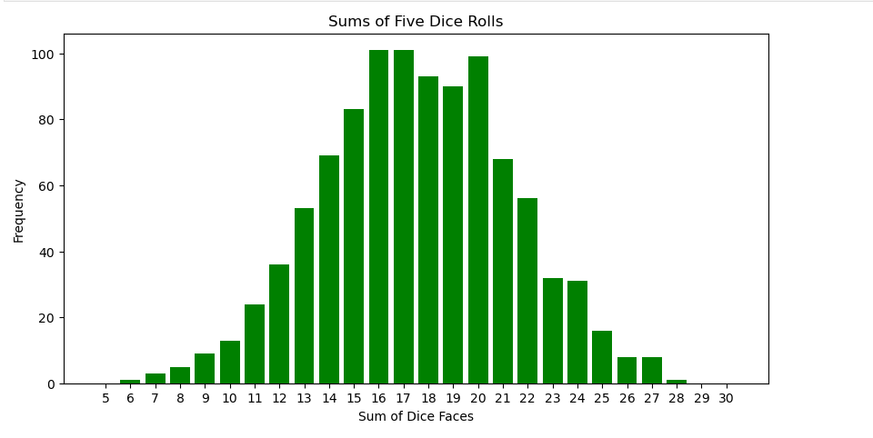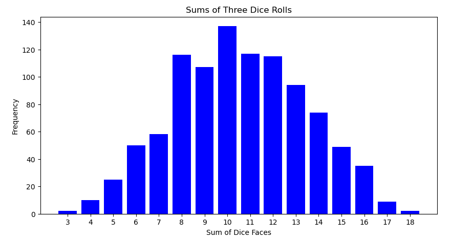 यह अलग shape इसलिए है क्योंकि middle के पास योग प्राप्त करने के अधिक तरीके होते हैं, जबकि छोटे या बड़े योग के लिए कम तरीके होते हैं।